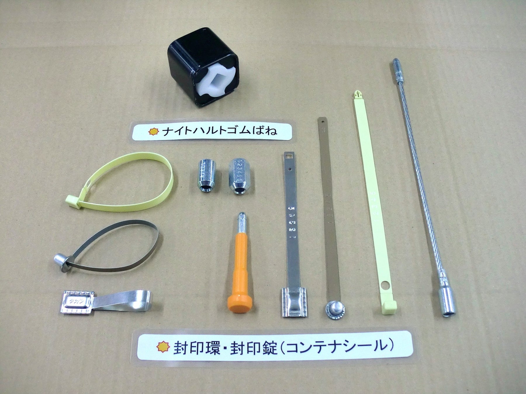 同社は、これまでにも昭和33年には金属ばねに劣らない耐久性を備え、電車のパンタグラフなどに使用される「ナイトハルトゴムばね」、昭和43年には海上コンテナ向けの「封印環・封印錠」(コンテナの扉に取り付ける鍵のような製品。破壊しなければ外すことができないため、集荷されてから解錠されていない証明となる)を自社製品として実用化、発展してきました。